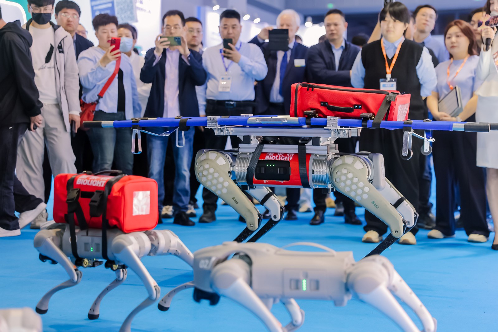 米兰·(milan)中国官方首日表现印证了这一趋势:四足机器人急救解决方案作为全场焦点,搭载转运监护仪、心电图机等核心设备,以展现了“设备随行、救治前置”的急救新范式。
